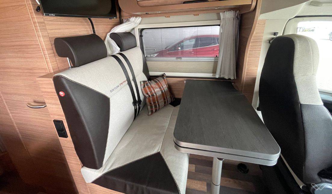 Flexible Sitzgruppe: Die Monositzgruppe mit ausziehbarer Tischplatte und drehbaren Fahrersitzen schafft einen gemütlichen Aufenthaltsbereich, den du auch in eine große Liegefläche verwandeln kannst.