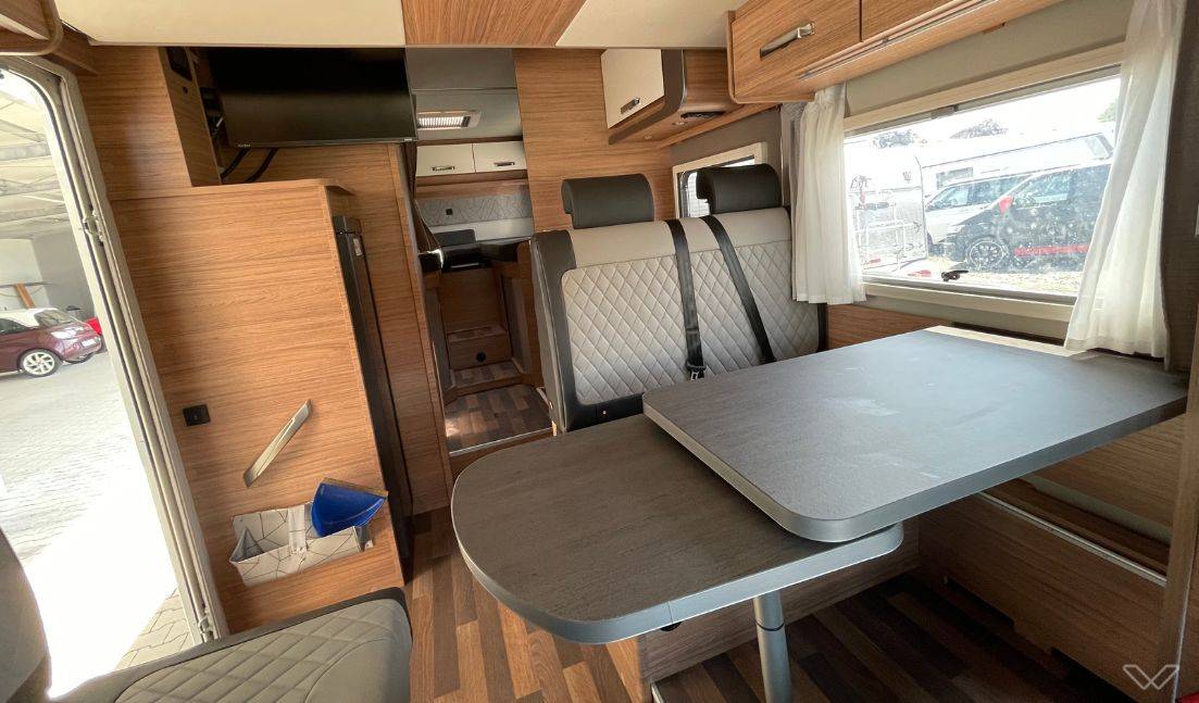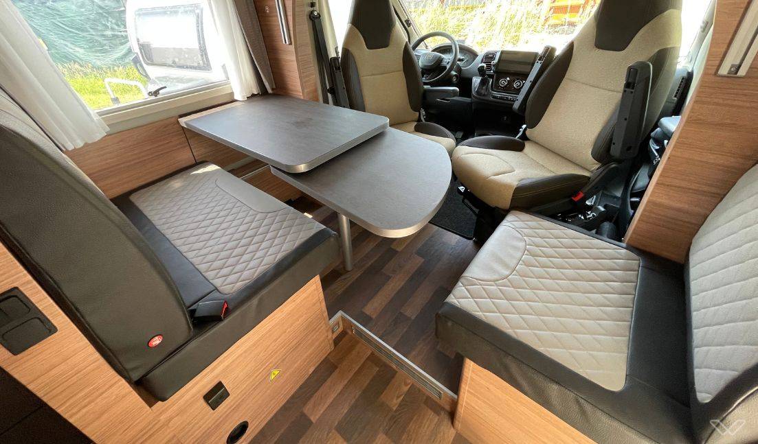 Praktische Details: Ein erweiterbarer Tisch und zahlreiche USB-Ladebuchsen im Wohnbereich erhöhen den Komfort.